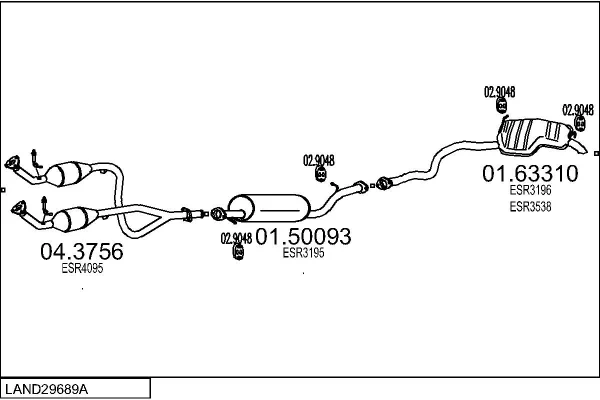 LAND ROVER RANGE ROVER II (P38A) 4.6 4x4 - Výfukový systém - kompletní od 7/1994 do 3/2002, 4553 ccm, 165 kW, 224 hp, 46 D, uzavřený terénní vůz