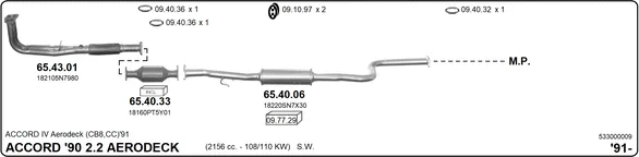HONDA ACCORD IV Aerodeck (CB) 2.2 i 16V (CB8) - Výfukový systém - kompletní od 1/1991 do 12/1993, 2156 ccm, 110 kW, 150 hp, F22A7, kombi