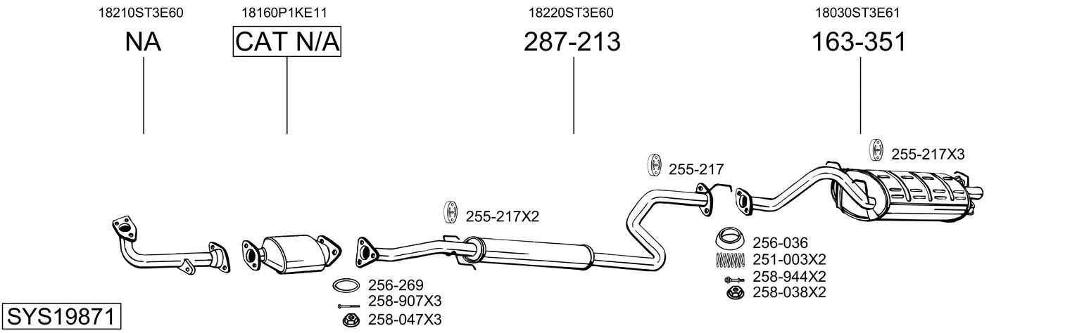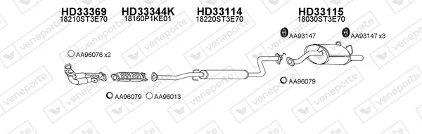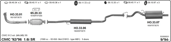 HONDA CIVIC VI Fastback (MA, MB) 1.6 i Vtec (MB1) - Výfukový systém - kompletní od 9/1994 do 1/1997, 1590 ccm, 93 kW, 126 hp, D16Y2, Šikmá zadní část