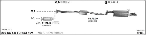 NISSAN 200SX (S13) 1.8 Turbo - Výfukový systém - kompletní od 7/1988 do 11/1993, 1809 ccm, 124 kW, 169 hp, CA18DET, kupé