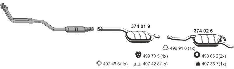 MERCEDES-BENZ 124 limuzína (W124) 230 E (124.023) - Výfukový systém - kompletní od 1/1985 do 6/1993, 2298 ccm, 100 kW, 136 hp, M 102.982, limuzína