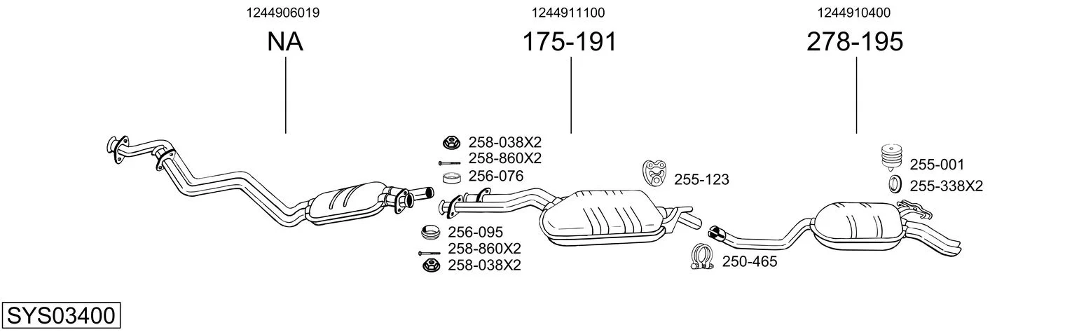 MERCEDES-BENZ 124 limuzína (W124) 260 E (124.026) - Výfukový systém - kompletní od 9/1985 do 12/1989, 2597 ccm, 122 kW, 166 hp, M 103.940, limuzína