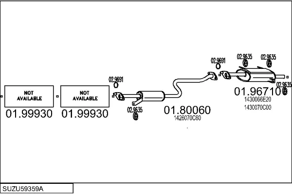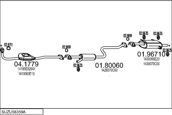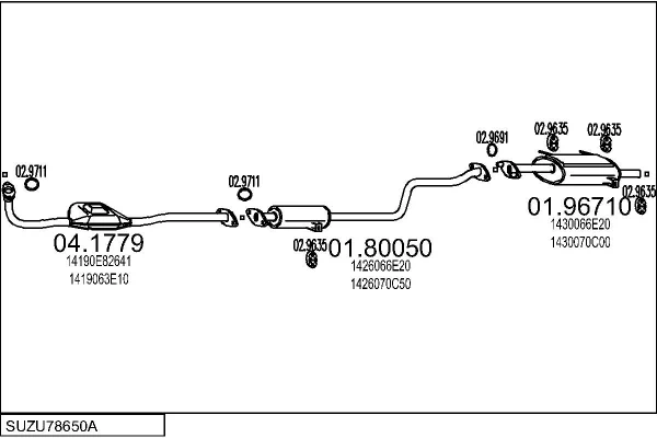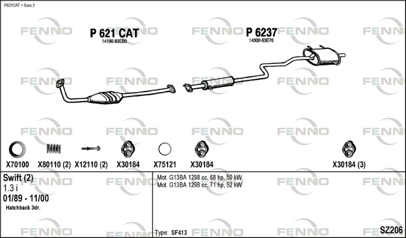 SUZUKI SWIFT II limuzína (AH, AJ) 1.3 (SF413, AH35, MA) - Výfukový systém - kompletní od 1/1991 do 12/1995, 1298 ccm, 50 kW, 68 hp, G13BA, limuzína