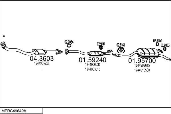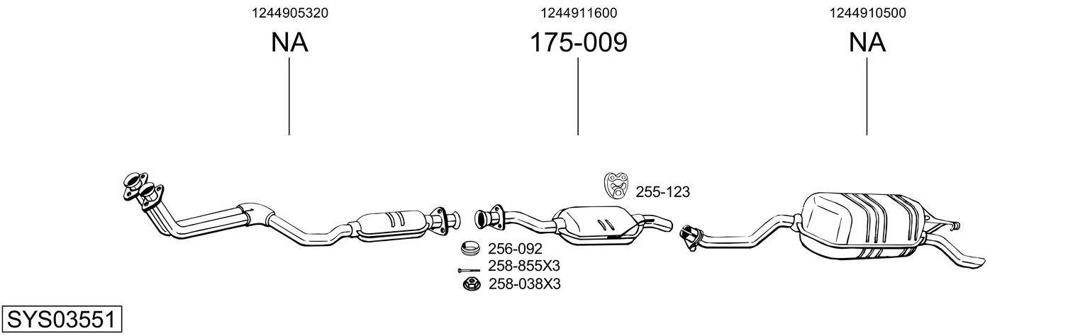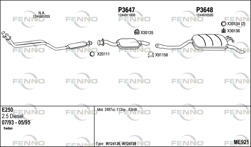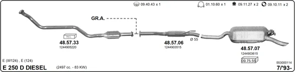 MERCEDES-BENZ E-CLASS (W124) E 250 D (124.126, 124.129) - Výfukový systém - kompletní od 7/1993 do 6/1995, 2497 ccm, 83 kW, 113 hp, OM 605.911, limuzína