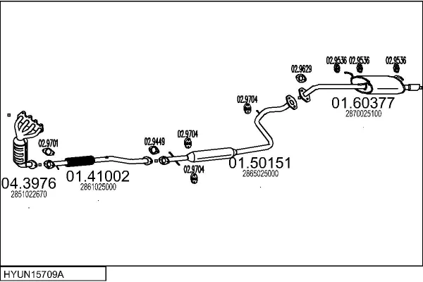 HYUNDAI ACCENT I (X-3) 1.5 i 12V - Výfukový systém - kompletní od 10/1994 do 1/2000, 1495 ccm, 65 kW, 88 hp, G4EK, Šikmá zadní část