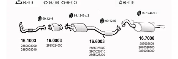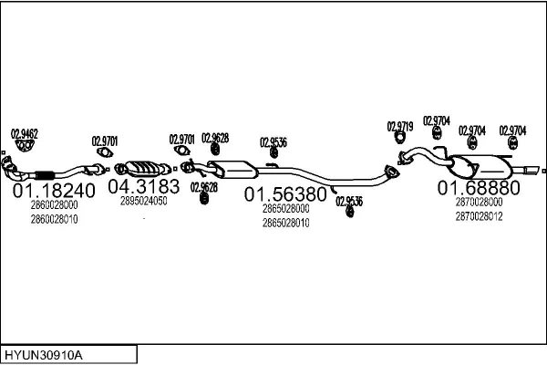 HYUNDAI LANTRA I (J-1) 1.5 i.e. - Výfukový systém - kompletní od 10/1990 do 11/1995, 1468 ccm, 63 kW, 86 hp, G4DJ, limuzína