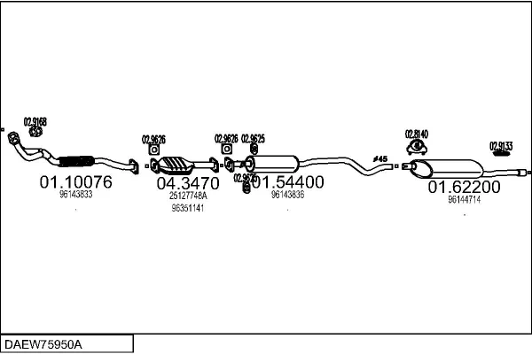 DAEWOO ESPERO (KLEJ) 1.8 - Výfukový systém - kompletní od 2/1995 do 9/1999, 1796 ccm, 66 kW, 90 hp, C18LE, limuzína