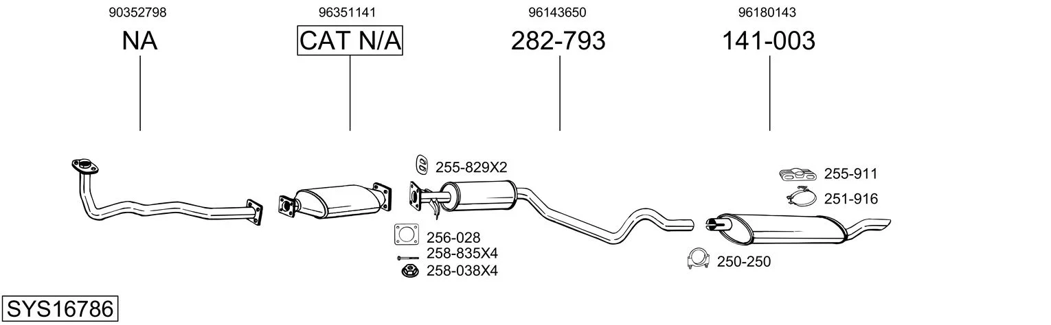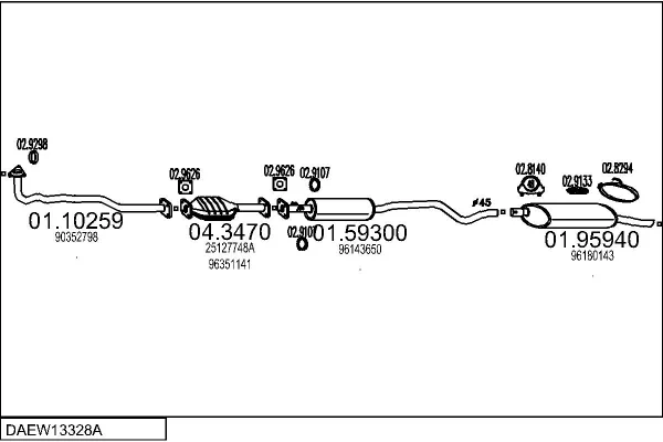 DAEWOO CIELO 1.5 (08, 68) - Výfukový systém - kompletní od 2/1995 do 8/1997, 1498 ccm, 52 kW, 71 hp, G15MF, Šikmá zadní část