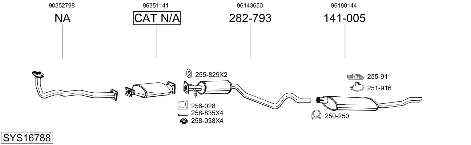 DAEWOO CIELO limuzína 1.5 (19) - Výfukový systém - kompletní od 2/1995 do 8/1997, 1498 ccm, 52 kW, 71 hp, G15MF, limuzína