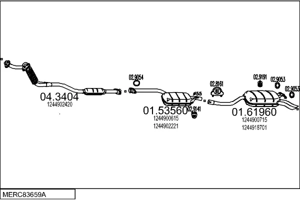 MERCEDES-BENZ 124 limuzína (W124) 300 D (124.130) - Výfukový systém - kompletní od 8/1989 do 6/1993, 2996 ccm, 83 kW, 113 hp, OM 603.912, limuzína