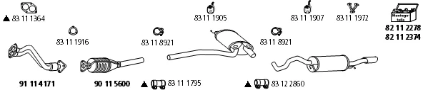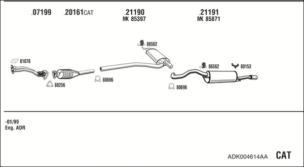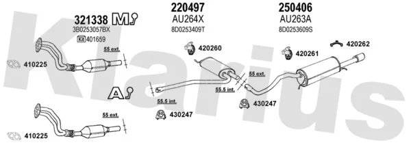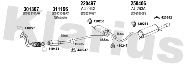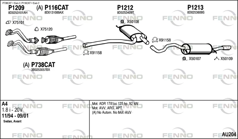 AUDI A4 B5 (8D2) 1.8 - Výfukový systém - kompletní od 11/1994 do 11/2000, 1781 ccm, 92 kW, 125 hp, ADR, APT, ARG, AVV, limuzína