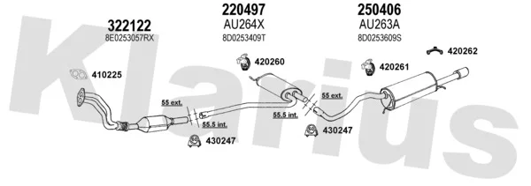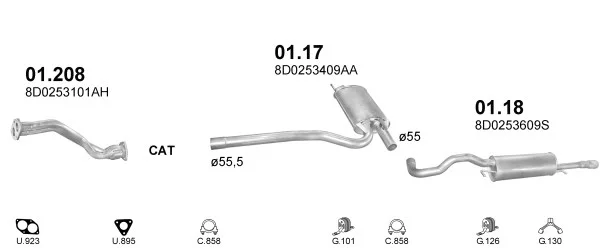 AUDI A4 B5 (8D2) 1.8 - Výfukový systém - kompletní od 11/1994 do 11/2000, 1781 ccm, 92 kW, 125 hp, ADR, APT, ARG, AVV, limuzína