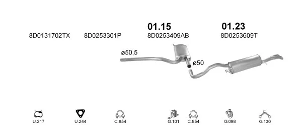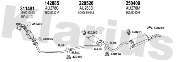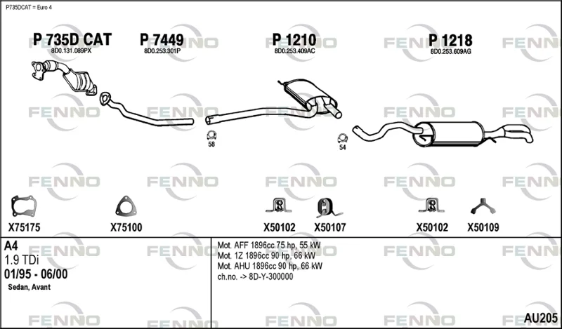 AUDI A4 B5 (8D2) 1.9 TDI - Výfukový systém - kompletní od 1/1995 do 11/2000, 1896 ccm, 66 kW, 90 hp, 1Z, AHH, AHU, limuzína
