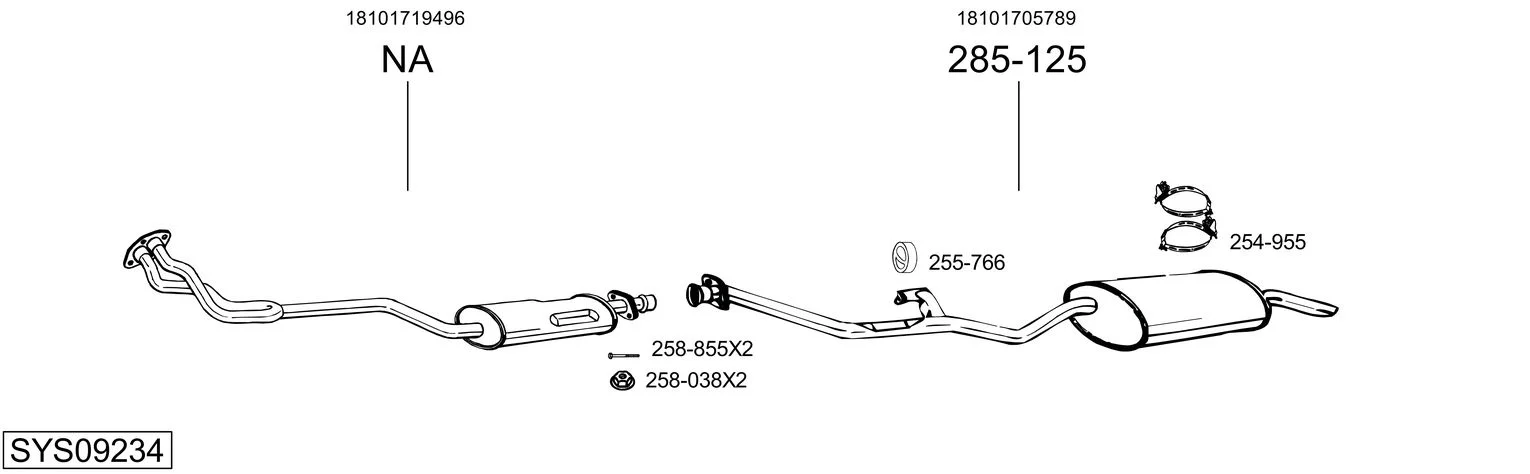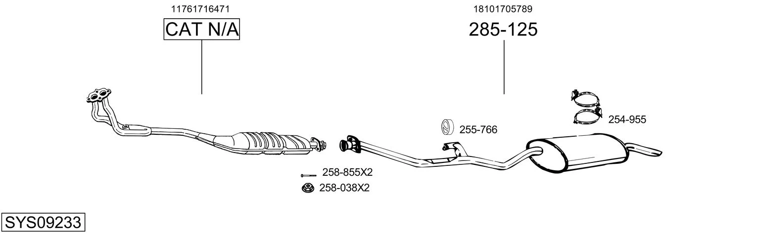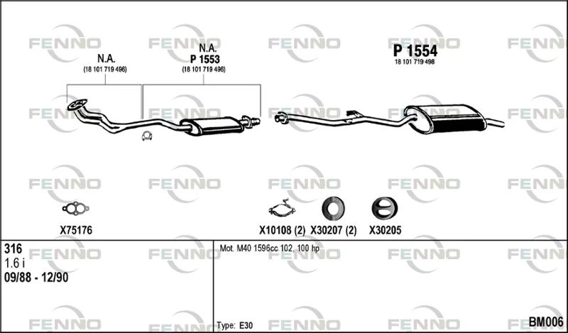 BMW 3 (E30) 316 i - Výfukový systém - kompletní od 7/1988 do 6/1991, 1596 ccm, 75 kW, 102 hp, M40 B16 (164E1), limuzína