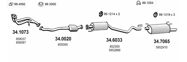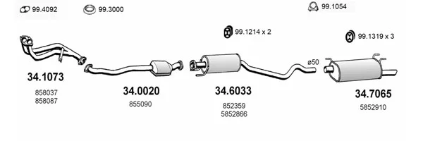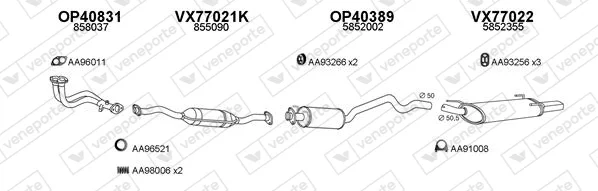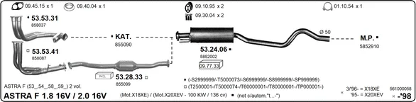 OPEL ASTRA F Šikmá zadní část (T92) 2.0 i 16V (F08, M08, F68, M68) - Výfukový systém - kompletní od 2/1995 do 1/1998, 1998 ccm, 100 kW, 136 hp, X 20 XEV, Šikmá zadní část