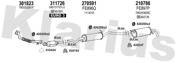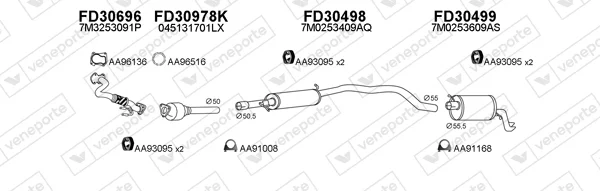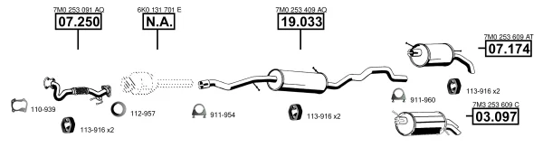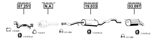 VW SHARAN (7M8, 7M9, 7M6) 1.9 TDI - Výfukový systém - kompletní od 9/1995 do 3/2010, 1896 ccm, 66 kW, 90 hp, 1Z, AHU, ANU, velkoprostorová limuzína
