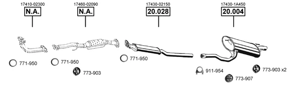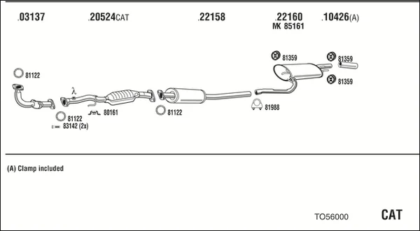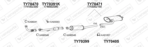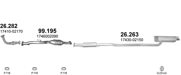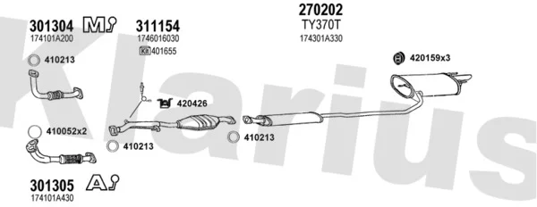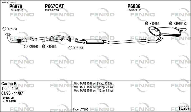 TOYOTA CARINA E VI limuzína (_T19_) 1.6 (AT190) - Výfukový systém - kompletní od 1/1995 do 9/1997, 1587 ccm, 73 kW, 99 hp, 4A-FE, limuzína
