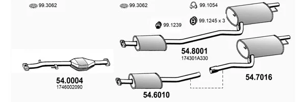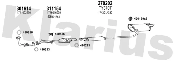 TOYOTA CARINA E VI (_T19_) 1.8 (AT191) - Výfukový systém - kompletní od 1/1995 do 9/1997, 1762 ccm, 79 kW, 107 hp, 7A-FE, Šikmá zadní část