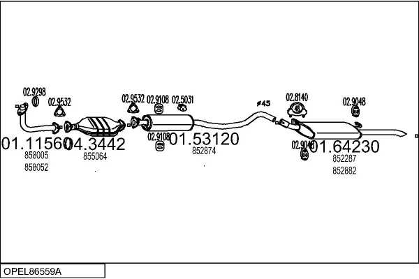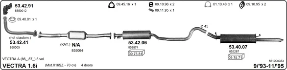 OPEL VECTRA A (J89) 1.6 i (F19, M19) - Výfukový systém - kompletní od 9/1993 do 11/1995, 1598 ccm, 52 kW, 71 hp, X 16 SZ, limuzína