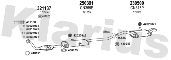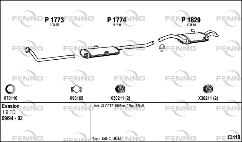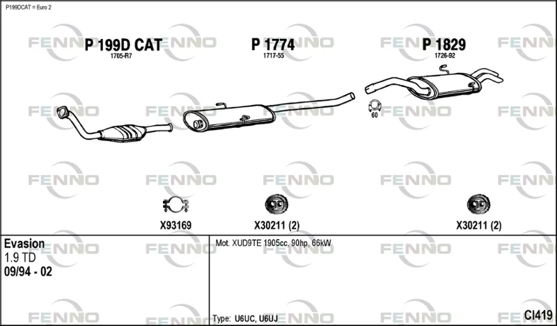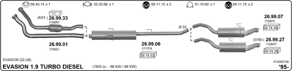 CITROËN EVASION velkoprostorová limuzína (22, U6) 1.9 TD - Výfukový systém - kompletní od 11/1994 do 7/2002, 1905 ccm, 66 kW, 90 hp, D8B (XUD9TF), DHX (XUD9TF), velkoprostorová limuzína