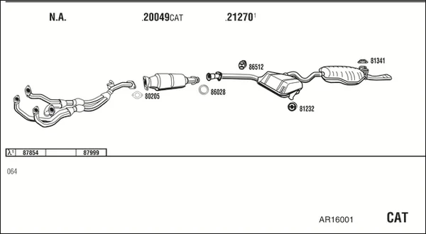 ALFA ROMEO 146 (930_) 1.6 i.e. (930.B2) - Výfukový systém - kompletní od 12/1994 do 12/1996, 1596 ccm, 76 kW, 103 hp, AR 33201, Šikmá zadní část