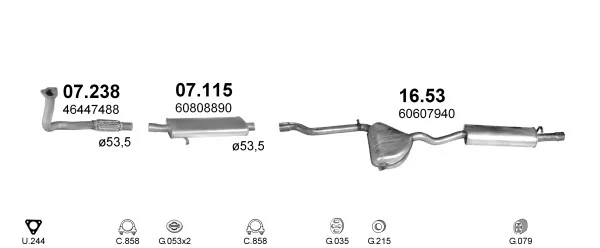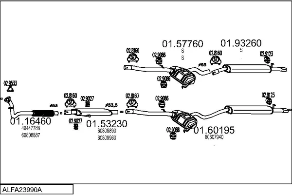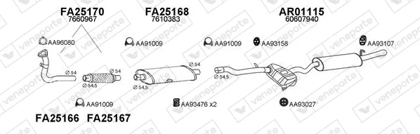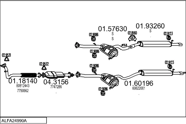 ALFA ROMEO 146 (930_) 1.9 TD (930.B4A) - Výfukový systém - kompletní od 12/1994 do 2/1999, 1929 ccm, 66 kW, 90 hp, AR 33601, AR 67501, Šikmá zadní část