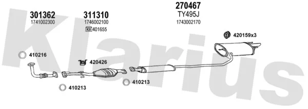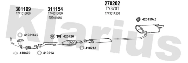 TOYOTA CARINA E VI Sportswagon (_T19_) 1.6 i (AT190_, AT190R) - Výfukový systém - kompletní od 2/1995 do 9/1997, 1587 ccm, 73 kW, 99 hp, 4A-FE, kombi