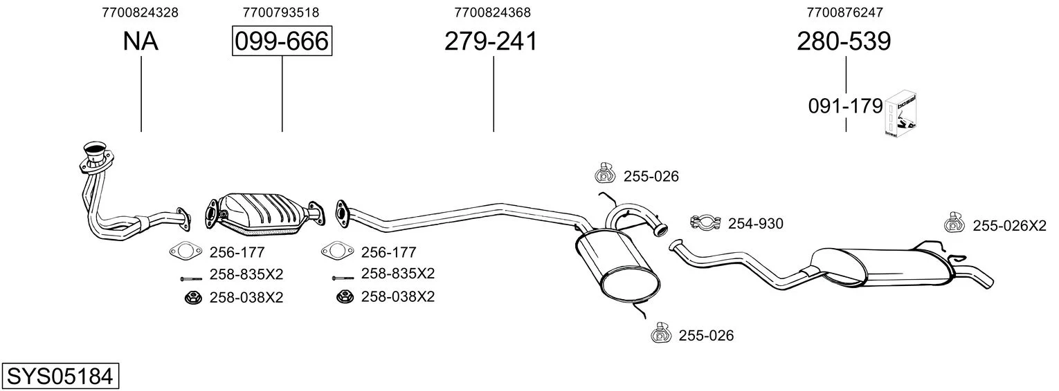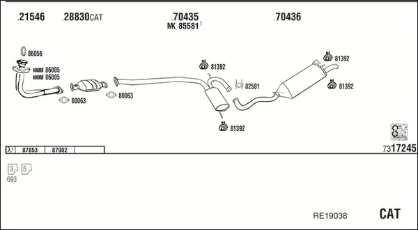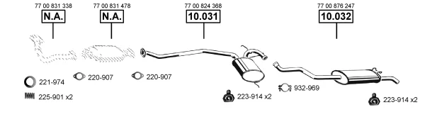 RENAULT 19 II (B/C53_) 1.8 (5/353A) - Výfukový systém - kompletní od 4/1992 do 12/1995, 1794 ccm, 66 kW, 90 hp, F3P 706, F3P 760, Šikmá zadní část