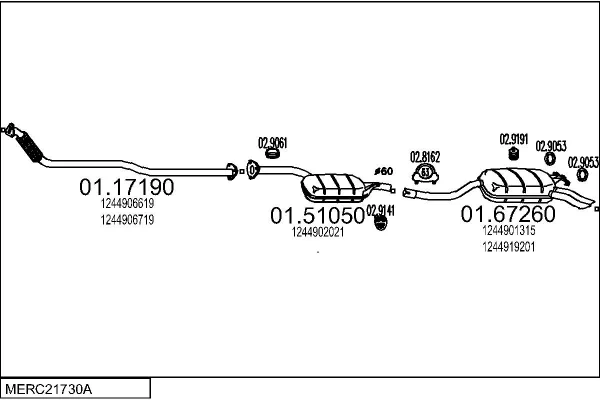 MERCEDES-BENZ E-CLASS (W124) E 300 Turbo-D 4-matic (124.333) - Výfukový systém - kompletní od 6/1993 do 6/1995, 2996 ccm, 108 kW, 147 hp, OM 603.963, limuzína