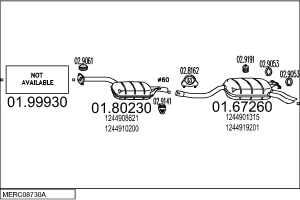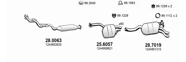 MERCEDES-BENZ E-CLASS (W124) E 300 Turbo-D (124.133) - Výfukový systém - kompletní od 6/1993 do 6/1995, 2996 ccm, 108 kW, 147 hp, OM 603.960, limuzína