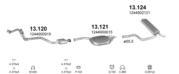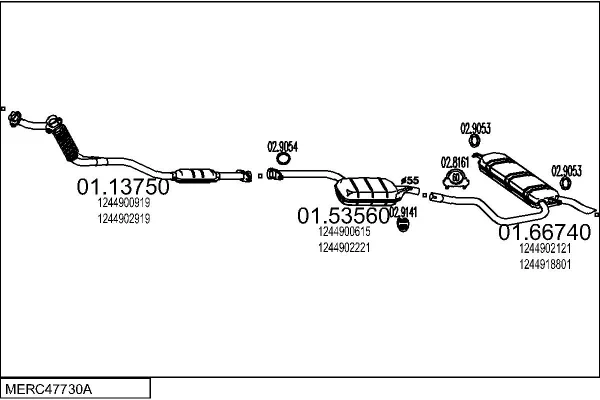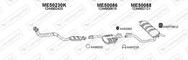 MERCEDES-BENZ 124 T-Model (S124) 300 T D (124.190) - Výfukový systém - kompletní od 9/1986 do 6/1993, 2996 ccm, 80 kW, 109 hp, OM 603.912, kombi
