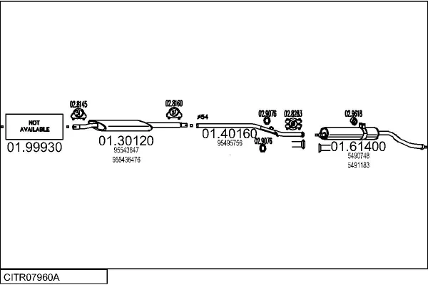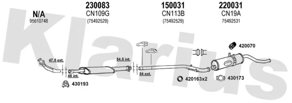 CITROËN CX II Break 20 - Výfukový systém - kompletní od 8/1985 do 8/1986, 1995 ccm, 78 kW, 106 hp, 829 A5, kombi