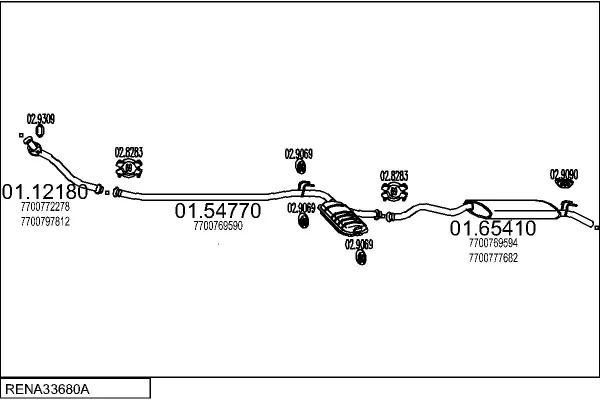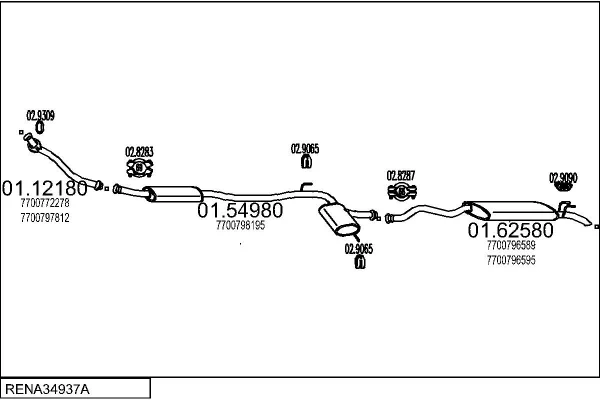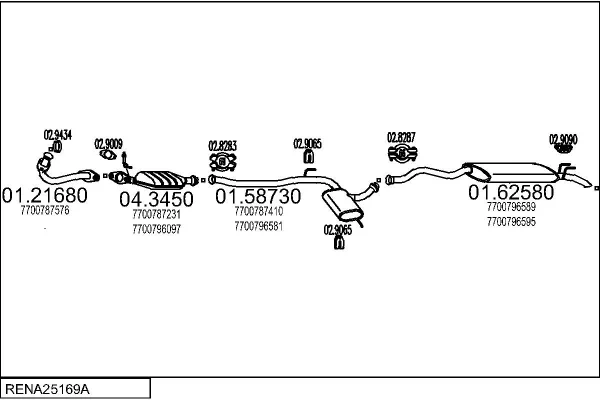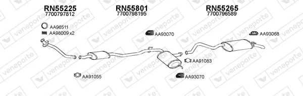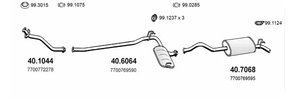 RENAULT 21 kombi (K48_) 1.7 (K/S481) - Výfukový systém - kompletní od 6/1986 do 3/1993, 1721 ccm, 55 kW, 75 hp, F2N 712, kombi