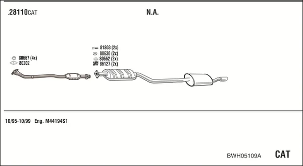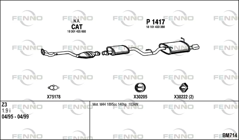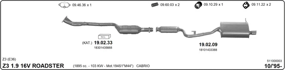 BMW Z3 Roadster (E36) 1.9 i - Výfukový systém - kompletní od 11/1995 do 3/1999, 1895 ccm, 103 kW, 140 hp, M44 B19 (194S1), Kabriolet