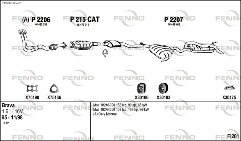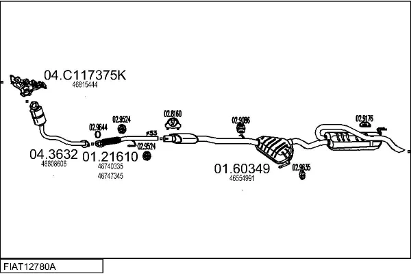 FIAT BRAVA (182_) 1.6 16V (182.BH) - Výfukový systém - kompletní od 10/1995 do 10/2001, 1581 ccm, 66 kW, 90 hp, 182 A6.000, Šikmá zadní část