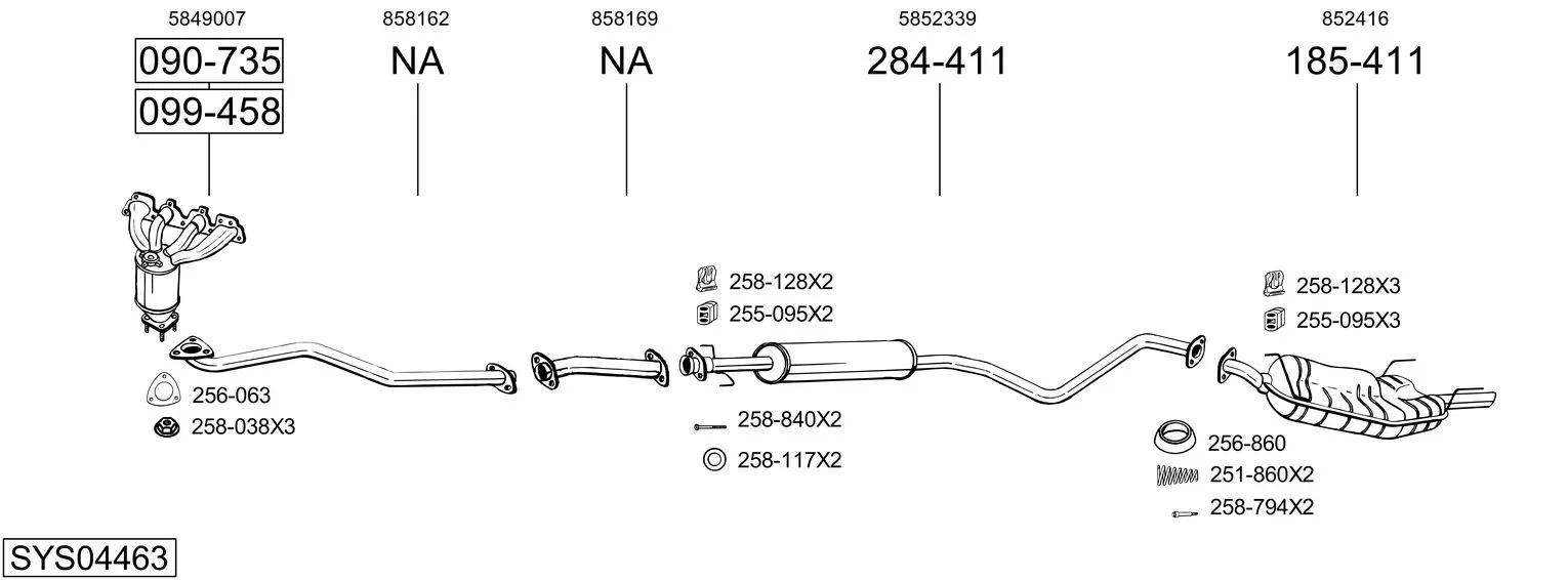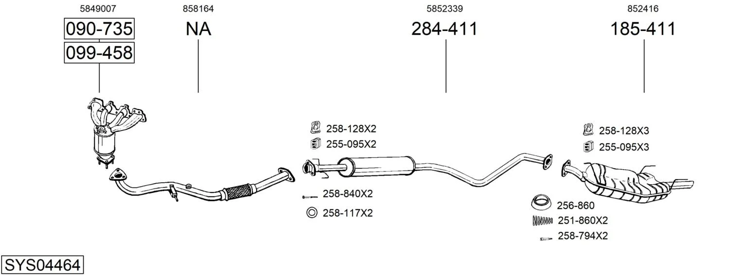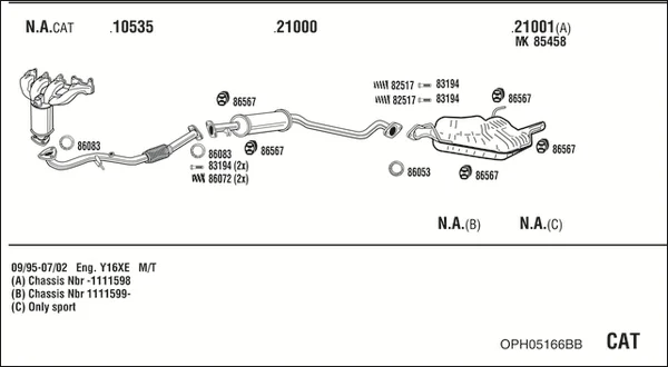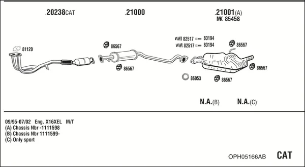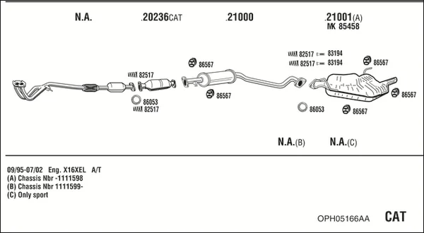 OPEL VECTRA B (J96) 1.6 i 16V (F19) - Výfukový systém - kompletní od 10/1995 do 4/2002, 1598 ccm, 74 kW, 100 hp, X 16 XEL, Y 16 XE, Z 16 XE, limuzína