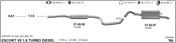 FORD ESCORT VI (GAL, AAL, ABL) 1.8 Turbo D - Výfukový systém - kompletní od 12/1995 do 10/1998, 1753 ccm, 51 kW, 70 hp, RVA, Šikmá zadní část