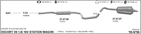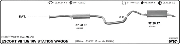 FORD ESCORT VI Turnier (GAL, ANL) 1.8 16V - Výfukový systém - kompletní od 1/1995 do 2/1999, 1796 ccm, 85 kW, 115 hp, RKC, kombi