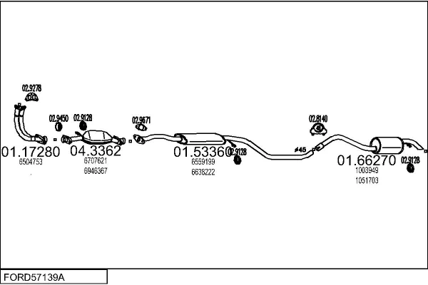 FORD ESCORT VI Turnier (GAL, ANL) 1.4 - Výfukový systém - kompletní od 1/1995 do 2/1999, 1392 ccm, 55 kW, 75 hp, F4B, FUH, kombi