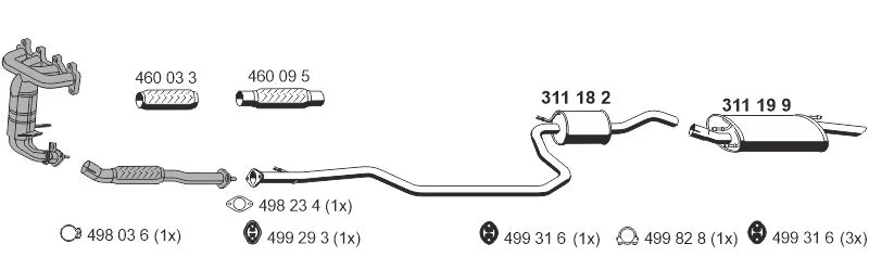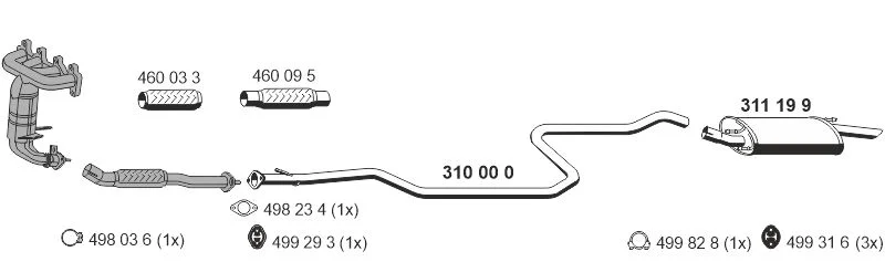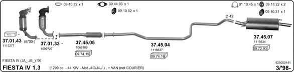 FORD FIESTA IV (JA_, JB_) 1.3 i - Výfukový systém - kompletní od 8/1995 do 1/2002, 1299 ccm, 44 kW, 60 hp, J4C, J4J, J4L, J4Q, J4R, J4T, JBC, Šikmá zadní část