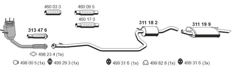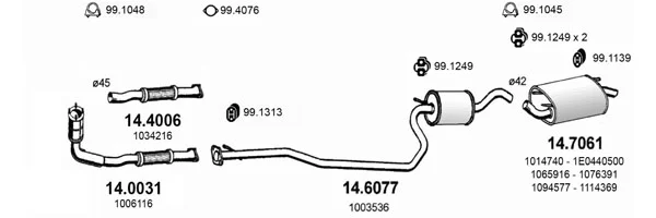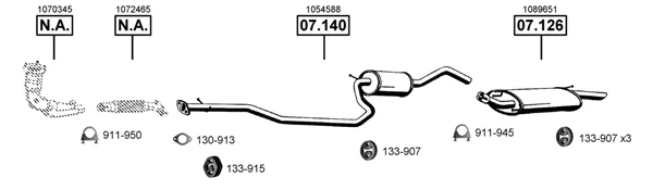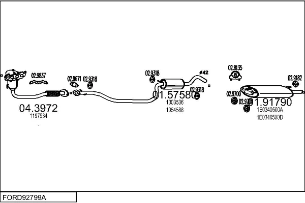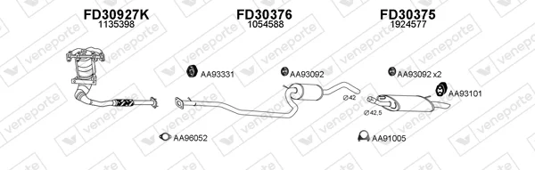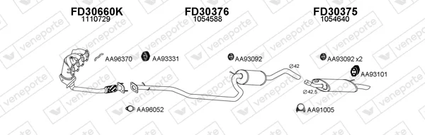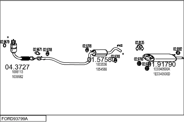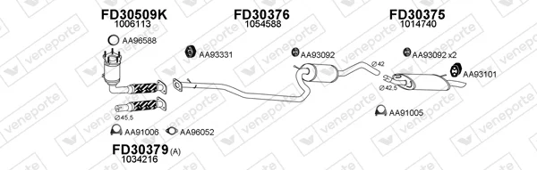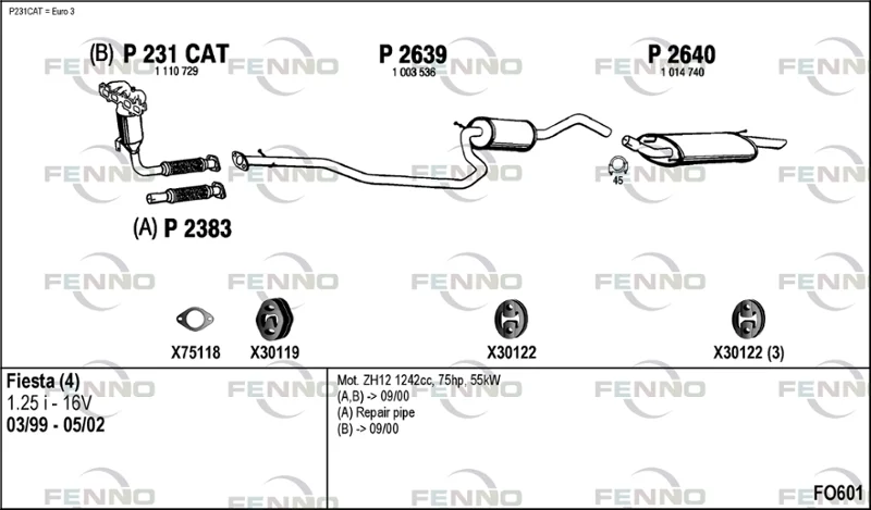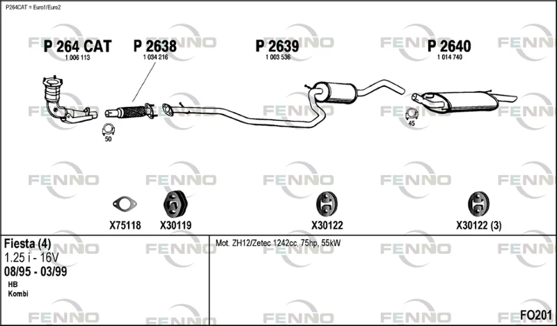 FORD FIESTA IV (JA_, JB_) 1.25 i 16V - Výfukový systém - kompletní od 8/1995 do 1/2002, 1242 ccm, 55 kW, 75 hp, DHA, DHB, DHC, DHD, DHE, DHF, DHG, Šikmá zadní část