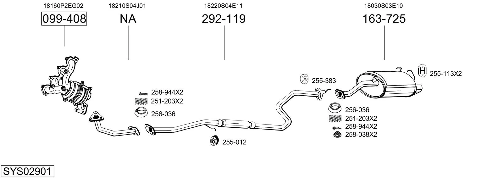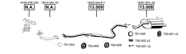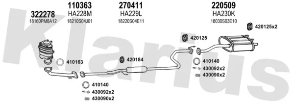 HONDA CIVIC VI Hatchback (EJ, EK) 1.5 i (EK3) - Výfukový systém - kompletní od 11/1995 do 2/2001, 1493 ccm, 84 kW, 114 hp, D15Z6, Šikmá zadní část