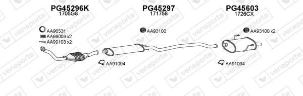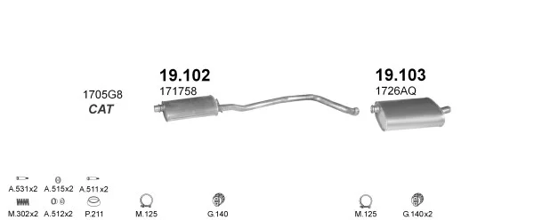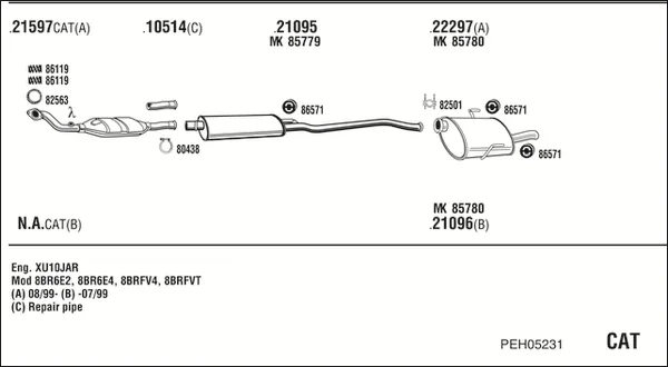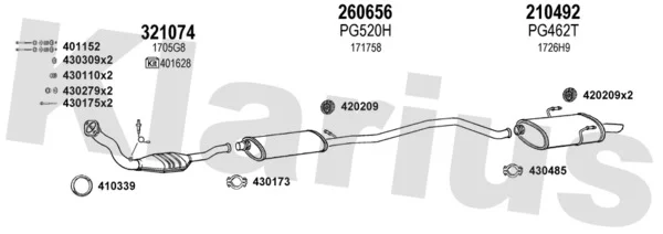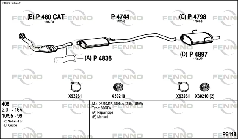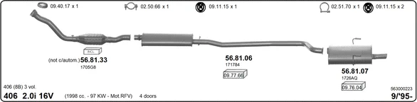 PEUGEOT 406 (8B) 2.0 16V - Výfukový systém - kompletní od 11/1995 do 5/2004, 1998 ccm, 97 kW, 132 hp, RFV (XU10J4R), limuzína