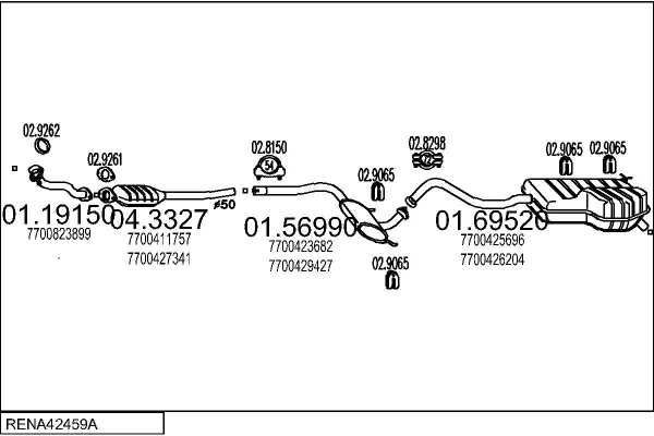 RENAULT LAGUNA I Grandtour (K56_) 1.8 (K56S/T/0) - Výfukový systém - kompletní od 9/1995 do 3/2001, 1794 ccm, 66 kW, 90 hp, F3P 670, F3P 678, kombi