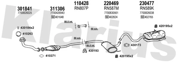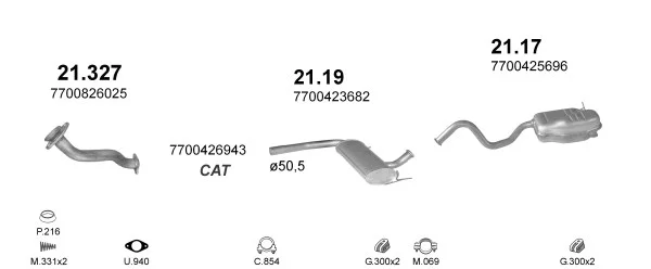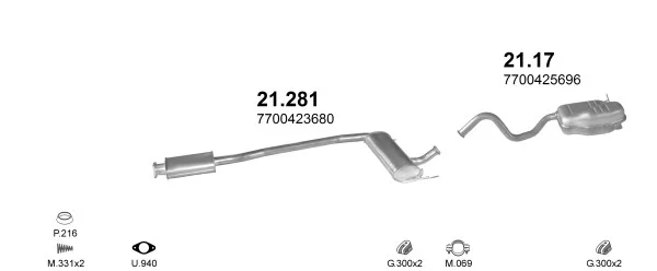 RENAULT LAGUNA I Grandtour (K56_) 2.2 D (K56F/2, S56F) - Výfukový systém - kompletní od 9/1995 do 3/2001, 2188 ccm, 61 kW, 83 hp, G8T 706, G8T 752, G8T 790, G8T 794, kombi