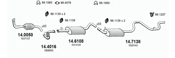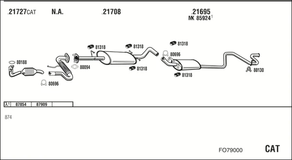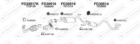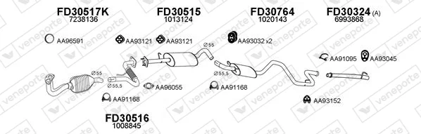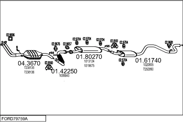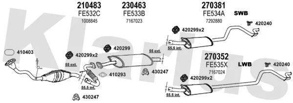 FORD TRANSIT autobus (E_ _) 2.0 (EBL, EBS, ECL, EDS, EDL, EGL, ESS, ESL, EUS) - Výfukový systém - kompletní od 8/1994 do 3/2000, 1998 ccm, 84 kW, 114 hp, NSF, NSG, NSH, autobus