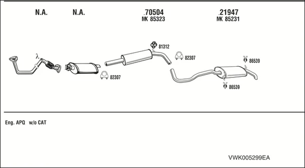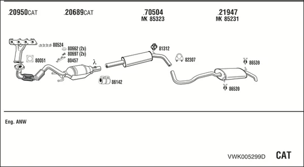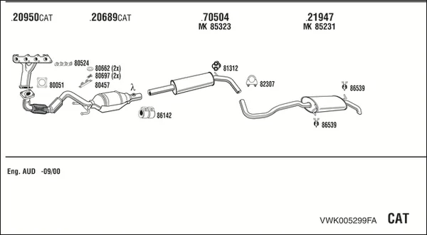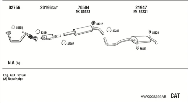 VW POLO III CLASSIC (6V2) 60 1.4 - Výfukový systém - kompletní od 12/1995 do 9/2001, 1390 ccm, 44 kW, 60 hp, AEX, AKK, AKV, ANW, APQ, AUD, limuzína