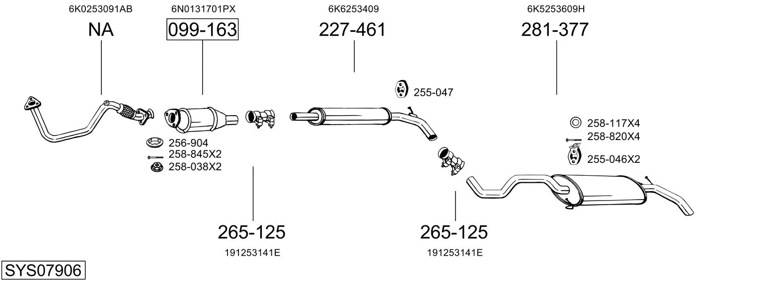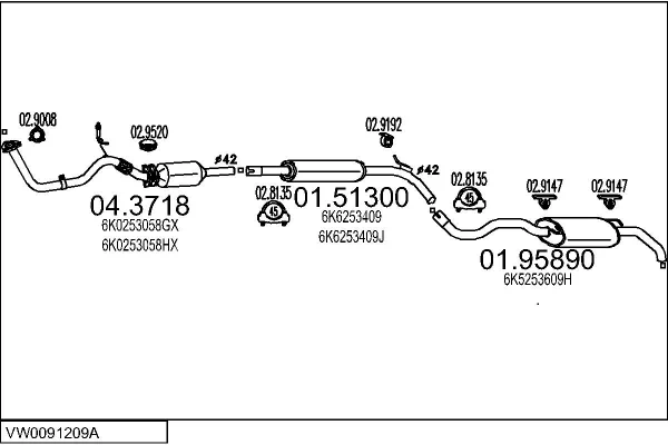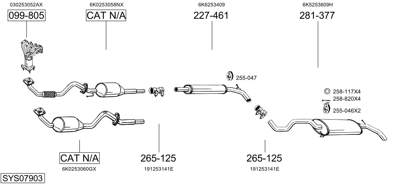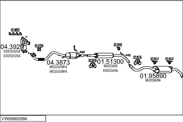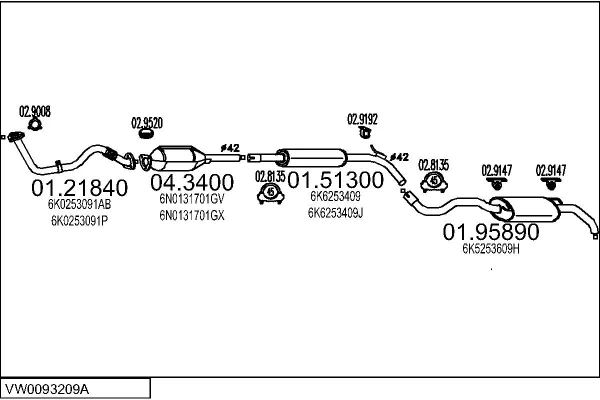 VW POLO III CLASSIC (6V2) 60 1.4 - Výfukový systém - kompletní od 12/1995 do 9/2001, 1390 ccm, 44 kW, 60 hp, AEX, AKK, AKV, ANW, APQ, AUD, limuzína