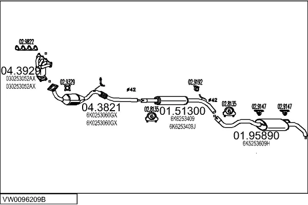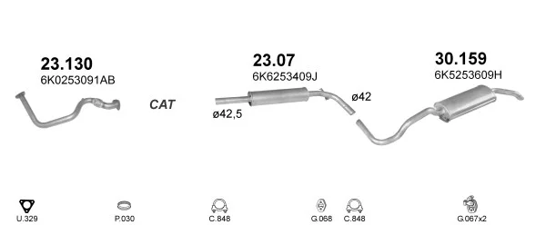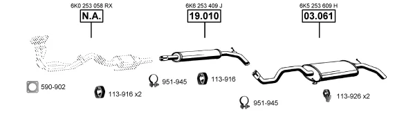 VW POLO III CLASSIC (6V2) 60 1.4 - Výfukový systém - kompletní od 12/1995 do 9/2001, 1390 ccm, 44 kW, 60 hp, AEX, AKK, AKV, ANW, APQ, AUD, limuzína