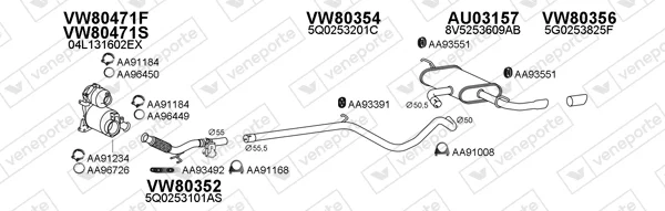 AUDI A3 Limousine (8VS, 8VM) 1.6 TDI - Výfukový systém - kompletní od 9/2013 do 5/2015, 1598 ccm, 77 kW, 105 hp, CLHA, limuzína